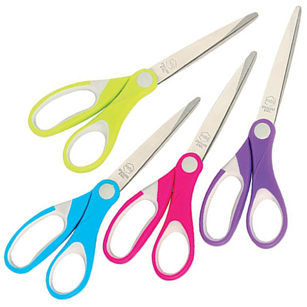 General purpose scissors, suitable for cutting light cardboard, paper, tape, cloth and many other materials in the office or home