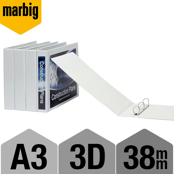 MARBIG INSERT RING BINDER PVC PORTRAIT 3D 38MM A3 WHITE