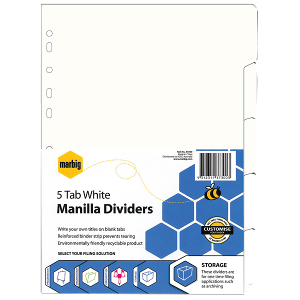 MARBIG MANILLA DIVIDER 5 TAB A4 WHITE