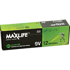 MAXLIFE BATTERY ALKALINE 9 VOLT PACK 12