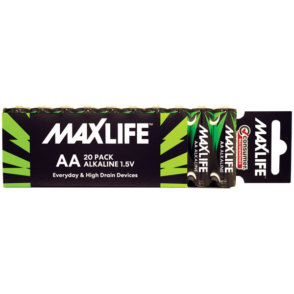 MAXLIFE BATTERY ALKALINE SIZE AA PACK 20