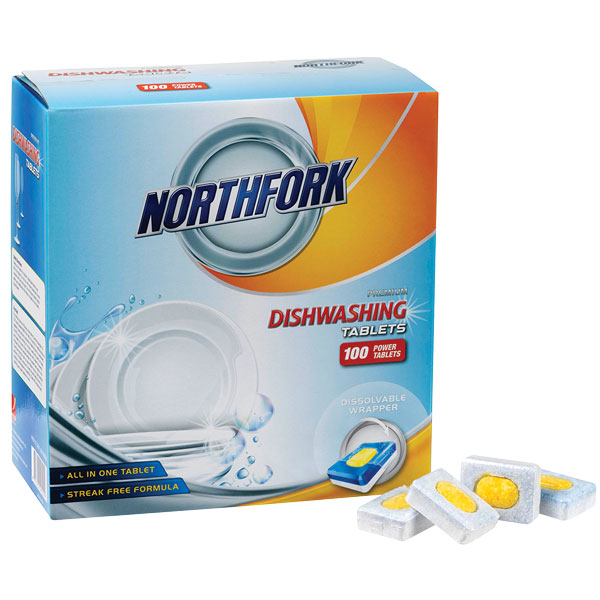 Northfork dishwashing tablets incorporate a superior cleaning formulation into one easy to use tablet