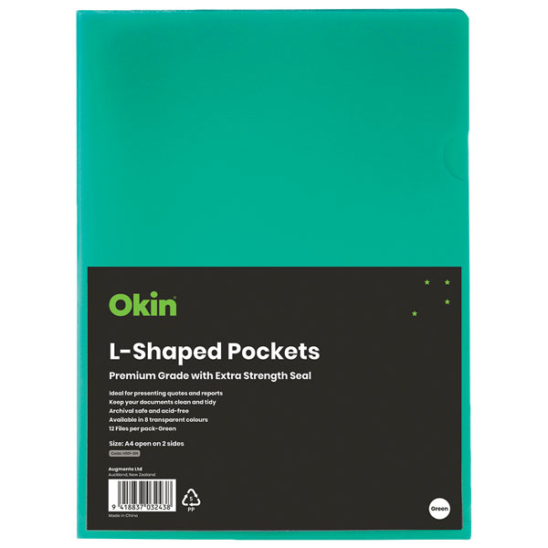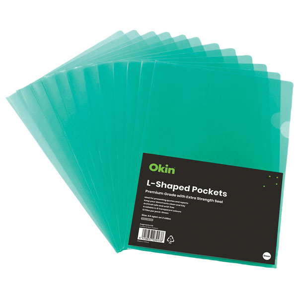 OKIN L-SHAPED POCKET A4 GREEN PACK 12