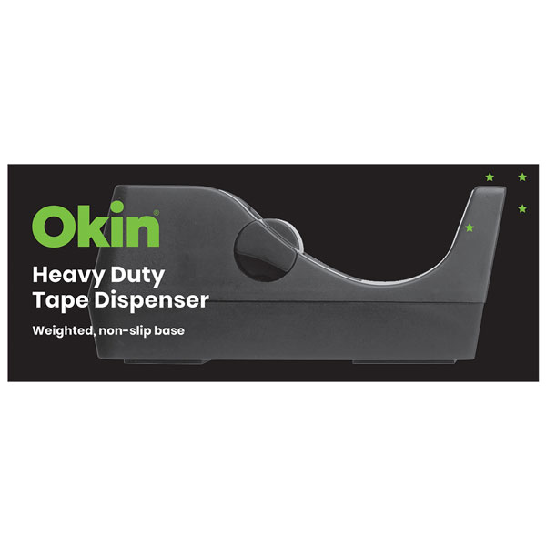 Heavy duty desktop tape dispenser. The weighted base and non-slip base allows one-handed dispensing. The dispenser takes 33 length rolls up to 24mm wide. Tape not included.