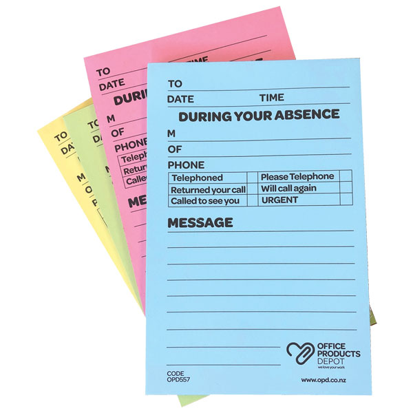 OPD DURING YOUR ABSENCE MESSAGE PAD 50 LEAF A6 ASSORTED PACK 10
