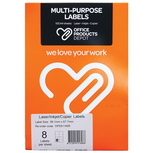 Office Products Depot laser labels format your labels easily - compatible with standard software e.g. WordDesigned to give optimum performance when used in most popular brands of photocopiers, laser and inkjet printers
