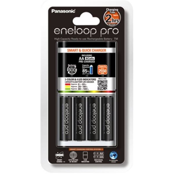 PANASONIC ENELOOP 2 HOUR QUICK CHARGER + 4AA ENELOOP PRO BATTERIES