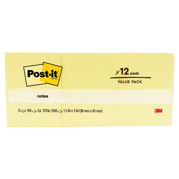 POST-IT 653 ORIGINAL NOTES 35 X 48MM YELLOW PACK 12
