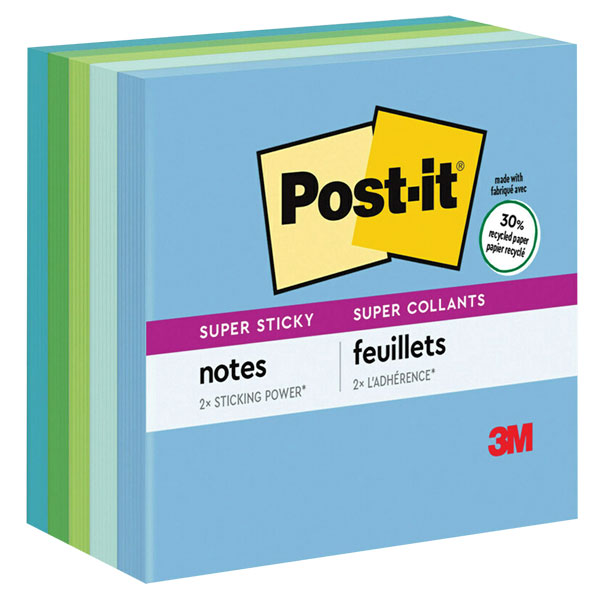 Post-it Recycled Super Sticky Notes in 76mm x 76mm size feature 2X the sticking power.