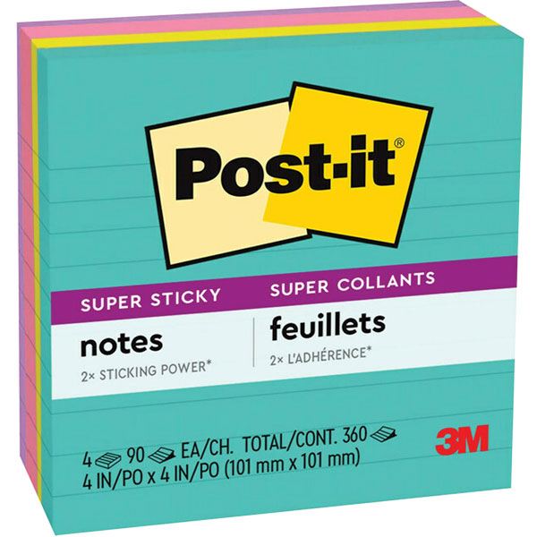 Post-it Super Sticky notes will stick to practically any surface where an attention grabbing note is needed.