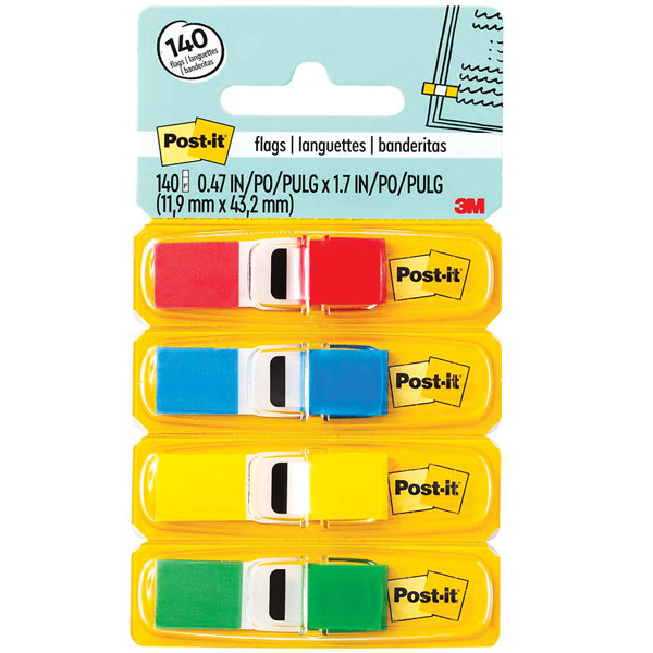 POST-IT 683-4 MINI INDEX FLAGS PRIMARY ASSORTED PACK 140