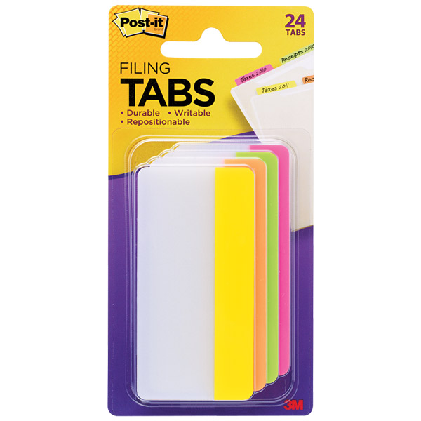 POST-IT 686-PLOY3IN DURABLE FILING TABS SOLID 75MM BRIGHT ASSORTED PACK 24