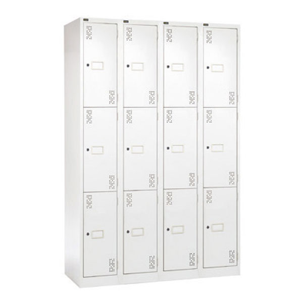 PRECISION CLASSIC LOCKER 3 TIER BANK OF 4 W1200 X D457 X H1800MM WHITE SATIN