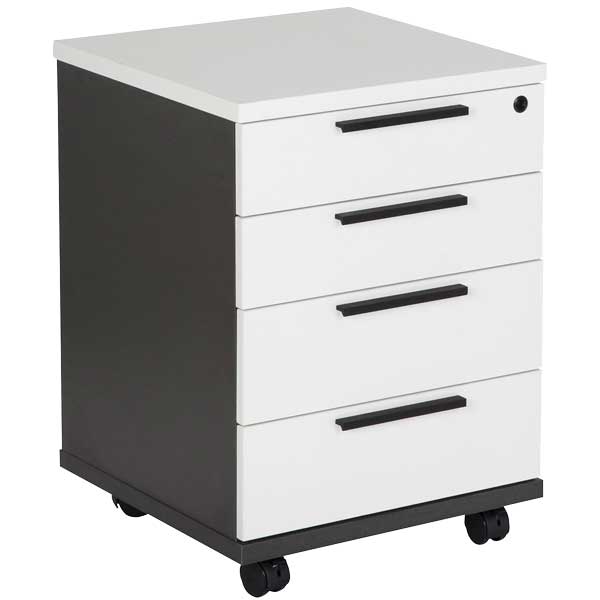 PULSE MOBILE 4 DRAWER LOCKABLE W470 X D480 X H650MM IRONSTONE AND WHITE