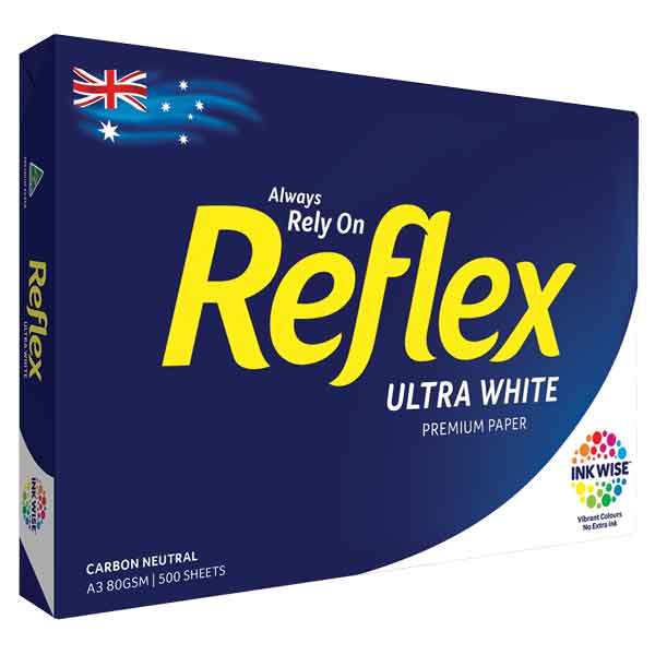 REFLEX COPY PAPER INKWISE TECHNOLOGY A3 80GSM ULTRA WHITE PACK 500 SHEETS