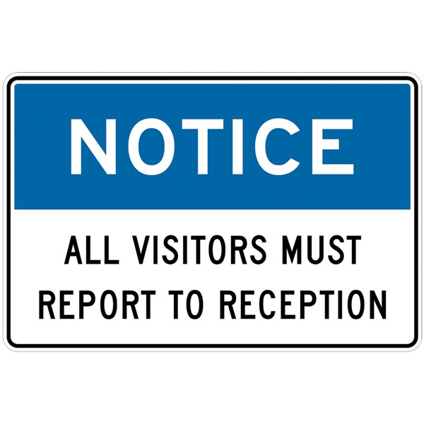 SAFETY SIGN W450 X H300MM ALL VISITORS MUST REPORT TO RECEPTION