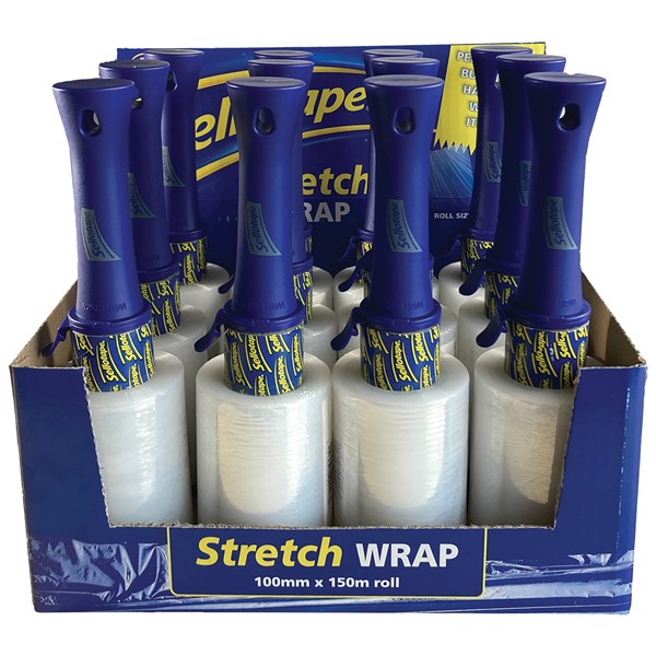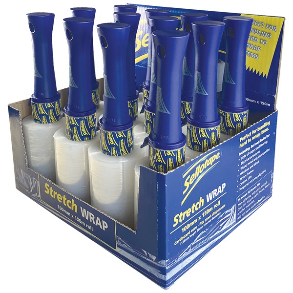 SELLOTAPE STRETCH WRAP ON HANDLE 100MM X 150M 20MU