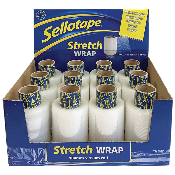 SELLOTAPE STRETCH WRAP ON HANDLE 100MM X 150M 20MU