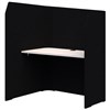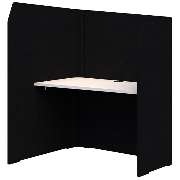 The high return wall shields users from distractions, while the angled desktop enhances privacy and acoustic performance