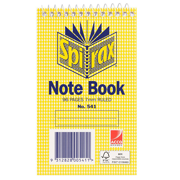SPIRAX 541 REPORTERS NOTEBOOK SPIRAL BOUND TOP OPEN 96 PAGE 147 X 87MM