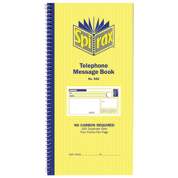 SPIRAX 550 TELEPHONE MESSAGE BOOK CARBONLESS 160 PAGE 279 X 144MM