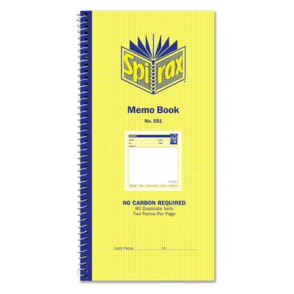 SPIRAX 551 MEMO BOOK CARBONLESS 80 PAGE 279 X 144MM