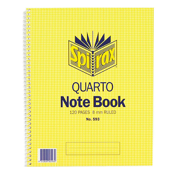 SPIRAX 593 NOTEBOOK 8MM RULED SPIRAL BOUND SIDE OPEN 120 PAGE QUARTO 252 X 200MM