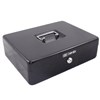 Strong metal 12 inch cash box for secure storage of cash, valuables, and important documents.