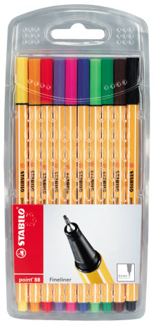 STABILO 88 POINT FINELINER PEN 0.4MM ASSORTED PACK 10