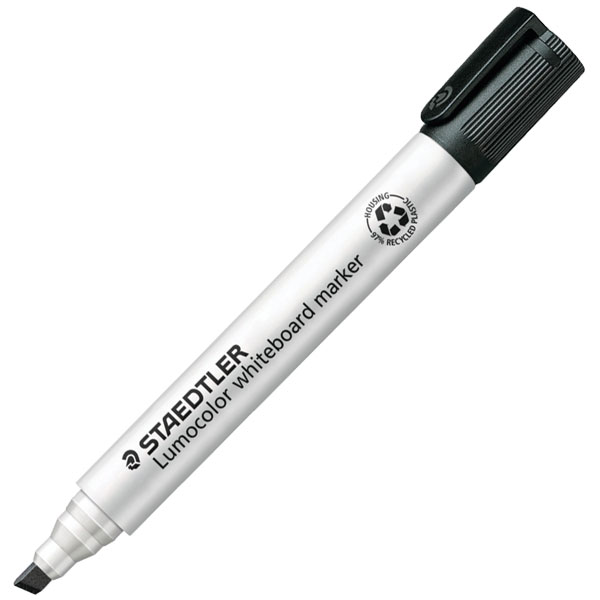 Staedtler 351 Lumocolor whiteboard marker can be dry-wiped from whiteboards and surfaces like glass and porcelain without leaving a trace