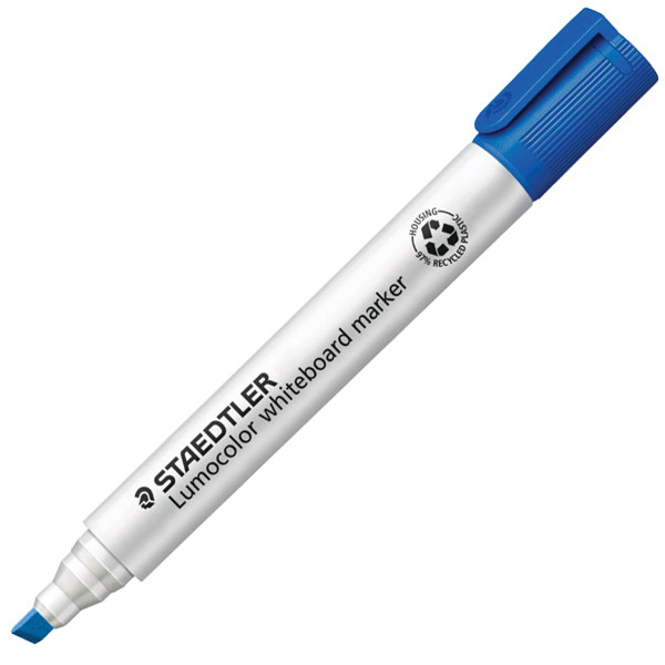 Staedtler 351 Lumocolor whiteboard marker can be dry-wiped from whiteboards and surfaces like glass and porcelain without leaving a trace