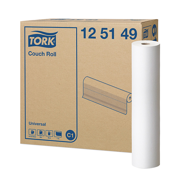 TORK 125149 C1 UNIVERSAL COUCH ROLL W490MM X L50.2M WHITE CTN 8