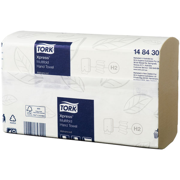 TORK 148430 H2 XPRESS HAND TOWEL MULTIFOLD ADVANCED SLIMLINE 1 PLY PACK 185 SHEETS