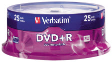VERBATIM 95033 DVD+R 4.7GB 16X SPINDLE SILVER PACK 25