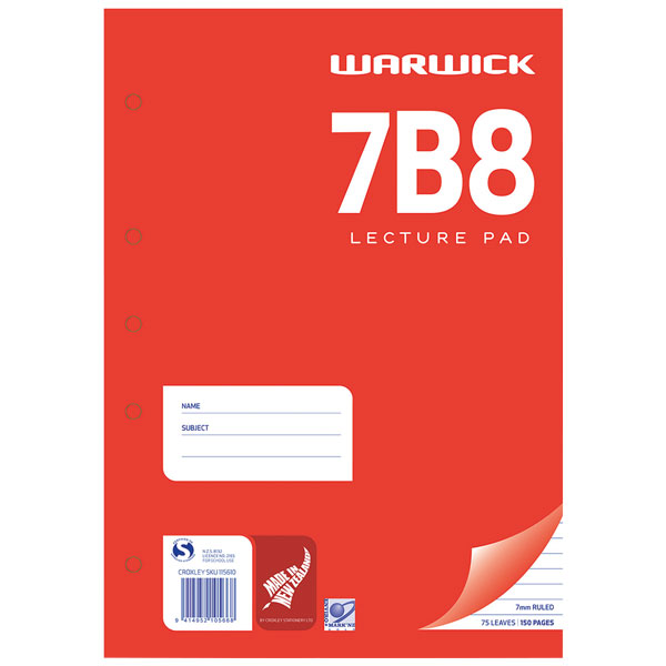WARWICK 7B8 EXERCISE BOOK 7MM RULED LECTURE PAD A4 75 LEAF