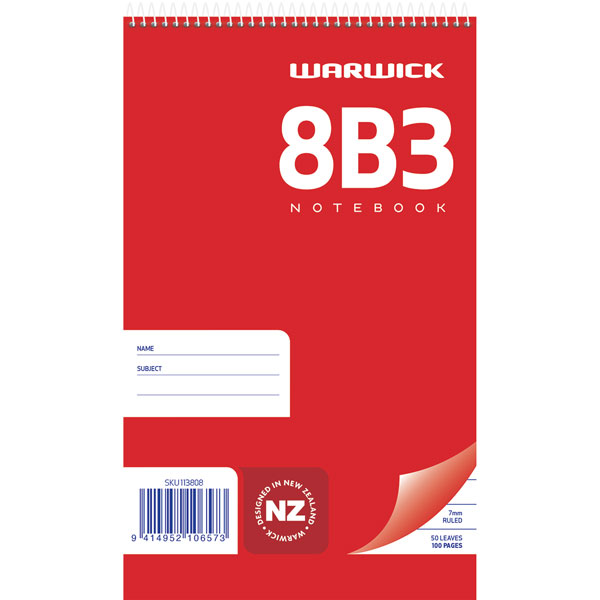 WARWICK 8B1 EXERCISE BOOK 7MM RULED SPIRAL BOUND W100 X L165MM 50 LEAF