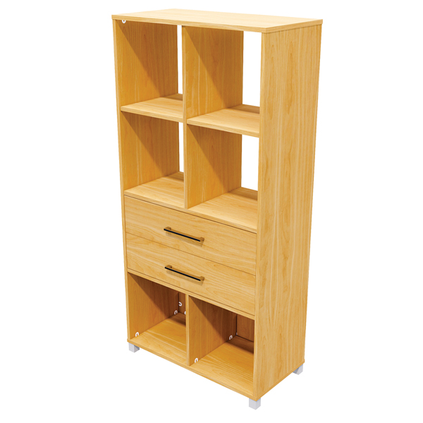 ZEALAND CUBBY HOLE BOOKCASE 6 CUBE 2 DRAWERS W800 X D400 X H1650MM FIORDLAND ELM