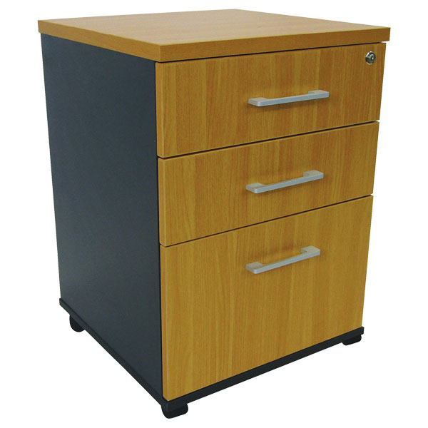 ZEALAND QUICKSHIP MOBILE 2 DRAWER 1 FILE W476 X D470 X H640MM BEECH AND CHARCOAL