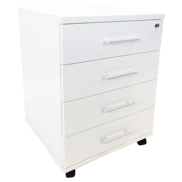 ZEALAND QUICKSHIP MOBILE 4 DRAWER W476 X D470 X H640MM WHITE LOCKING
