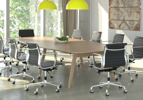 KNIGHT CUBIT BOARDROOM TABLE W2400 X D1200 X H730MM BLACK BASE ATLANTIC OAK TOP